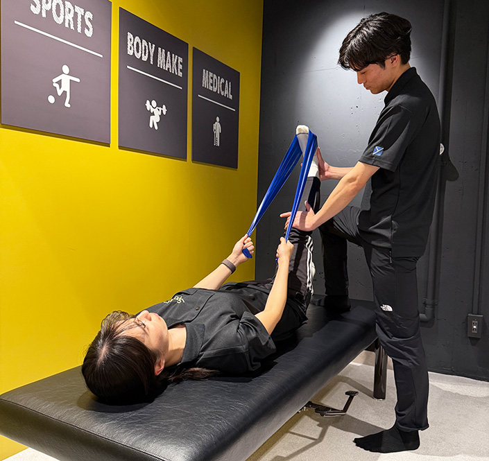 「腰痛を繰り返してしまう」「運動すると痛くなる」「右のふくらはぎだけ、いつも張ってくる」など、身体の不調に対して、理学療法士・アスレティックトレーナーが評価・治療を行います。