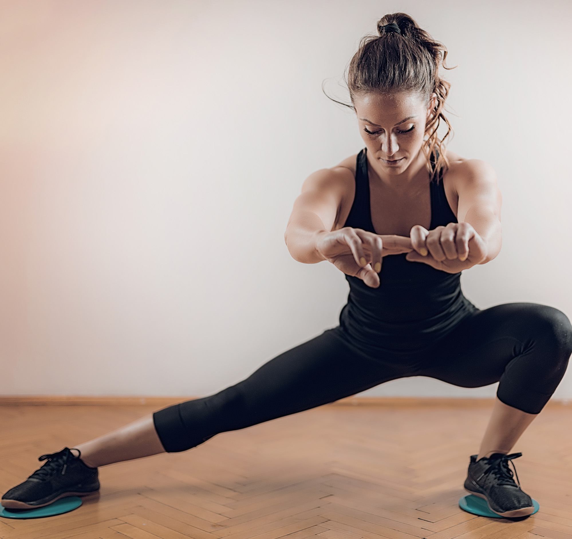 床の上で滑らせて使う、シンプルながら効果抜群のトレーニングギアです。手や足を置いて滑らせるだけで、通常のトレーニングでは使いにくい筋肉まで効率よく鍛えることができます。 特に優れているのは、関節に優しいながらも、しっかり筋肉を使える点です。滑る動きによって、体のバランスを取るために自然と体幹(お腹や背中の筋肉)が活性化されるため、姿勢改善や引き締め効果も期待できます。
